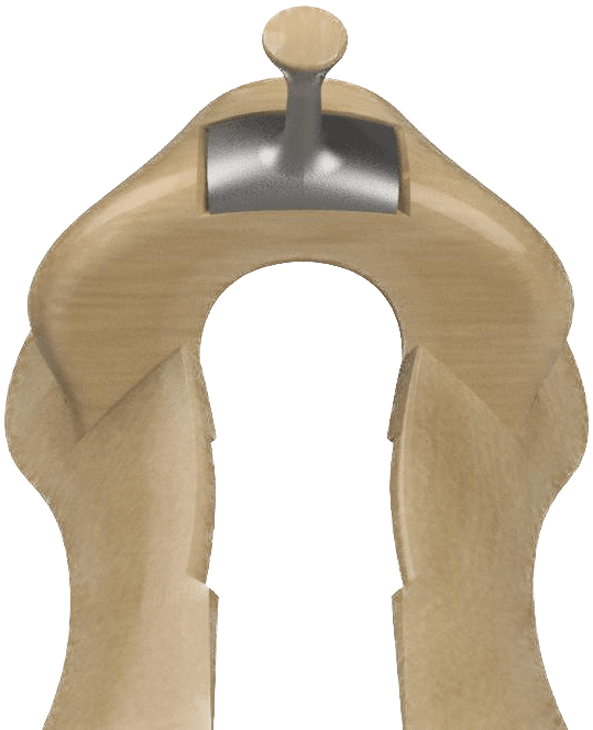 Our Louellen fork is built leaned ahead with a 13″ swell on 4″ stock thickness. 7.75″ gullet height as standard.